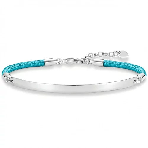 Plaited cord meets exquisite Sterling silver special moments are beautifully captured for all eternity with this sporty chic mix of materials. With the engravable bridge crafted from 925 Sterling silver, the beautifully finished Thomas Sabo Colour Love Bridge bracelet with its turquoise blue Mokuba ribbon makes a really stylish impact.