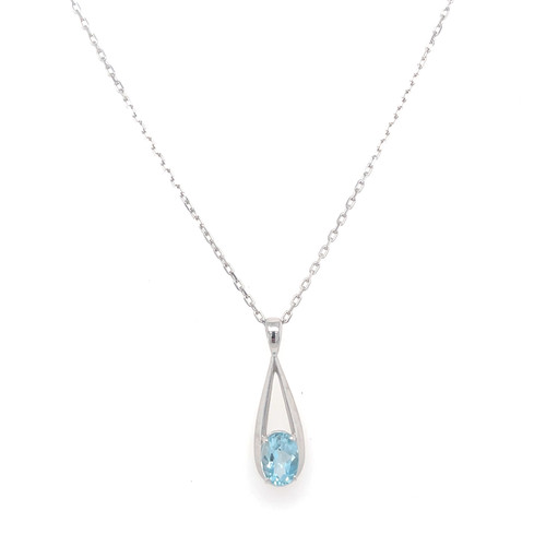 This elegant pendant is set in white gold with an oval Blue Topaz.